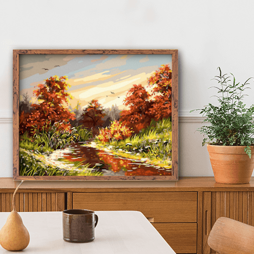 Zamyślona jesień to motyw, który szczególnie przypadnie do gustu miłośnikom pejzaży. Tworzenie tego obrazu rozwija cierpliwość i wrażliwość, pozwalając jednocześnie na pełne zanurzenie w sztuce.