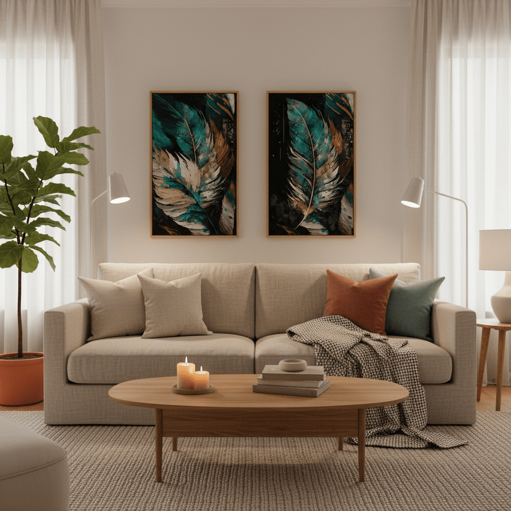 Dla spójnego efektu we wnętrzu rekomendowane jest zestawienie dwóch obrazów w podobnym stylu lub kolorystyce. Taki duet tworzy harmonijną kompozycję, porządkuje przestrzeń i nadaje ścianie charakter galeryjny — jak w dobrze zaprojektowanym wnętrzu. Złota kolekcja Galeryjna 40×70cm - to proste rozwiązanie, które podnosi estetykę pomieszczenia i sprawia, że dekoracja wygląda przemyślanie, nowocześnie i ponadczasowo.