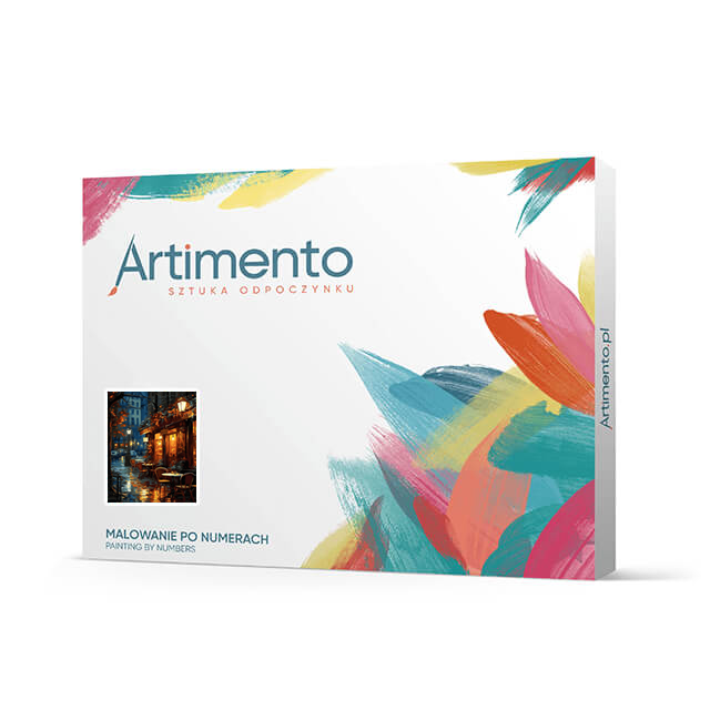 Zestaw do malowania po numerach Artimento Kawiarnia w deszczu zawiera: